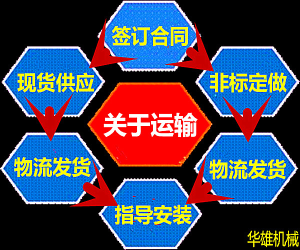 華雄機械對于常規(guī)產(chǎn)品現(xiàn)貨供應,當天訂貨,當天發(fā)貨,購買便捷。我公司按照合同規(guī)定的時間、地點,把貨物運輸?shù)侥康牡?。貨物托運后,我公司按照物流變更隨時通知收貨人。對于非標定制,我公司在預定工期內(nèi)完工之后及時通知客戶,如客戶有指定物流或快遞,我們會按照客戶要求發(fā)貨,如果客戶無特殊制定物流或快遞,我公司默認德邦物流發(fā)貨。