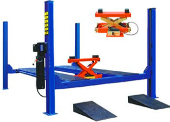地上式舉升機(jī)無需挖槽,適用于任何修理廠,有一些樓板上不適合安裝二柱舉升機(jī)以及普通四柱舉升機(jī),而本機(jī)器與樓板接觸面廣,這樣可以安裝在任何可以開車的樓板上面,解決客戶場地問題。剪式舉升機(jī)比兩柱和四柱舉升機(jī)極大的好處是不占用空間,方便使用,不足之處則是補(bǔ)油平衡要求很嚴(yán)格,而且需配備控制箱,造價(jià)較貴。